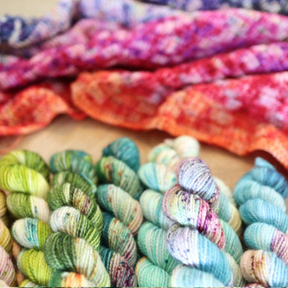 -Garen: Garen voor nld 2,5-3 mm, ik gebruikte 24 strengen x 73 m/20 g = 1752 m Merino Twist Sock mini (365 m/100 g, 80% merino, 20% nylon).