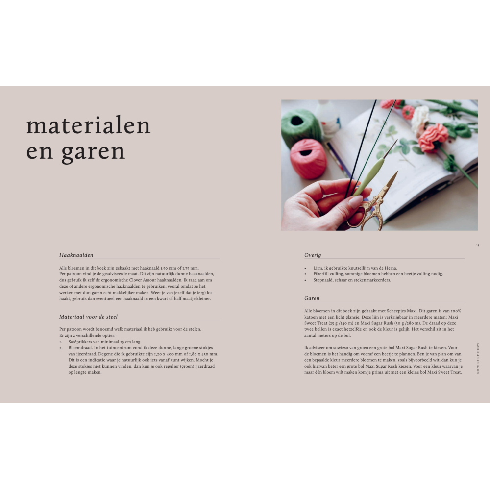 De bloemen zijn gehaakt met fijn garen en een dunne haaknaald, om van elk ontwerp een kunstwerkje op zich te maken. Laat je hier vooral niet door afschrikken. Ook al heb je nog nooit met dit materiaal gewerkt, de testers kunnen beamen dat het heel snel went. Wist je dat bijna de hele tester-groep het hele boeket heeft gehaakt?