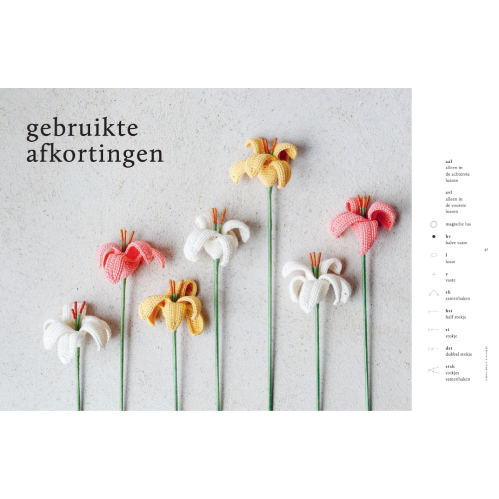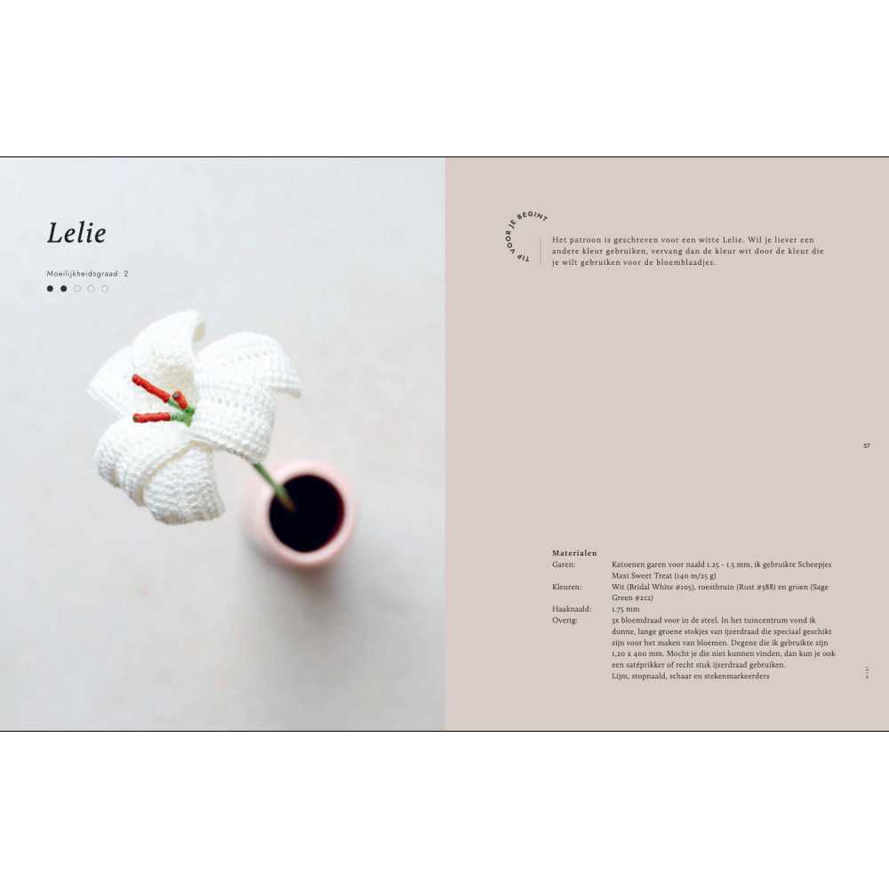 Leuk om te weten: Net als de knuffeltjes uit de Onesiegurumi collectie, worden ook deze bloemen gehaakt zonder naaiwerk, je haakt het hele ontwerp in elkaar.