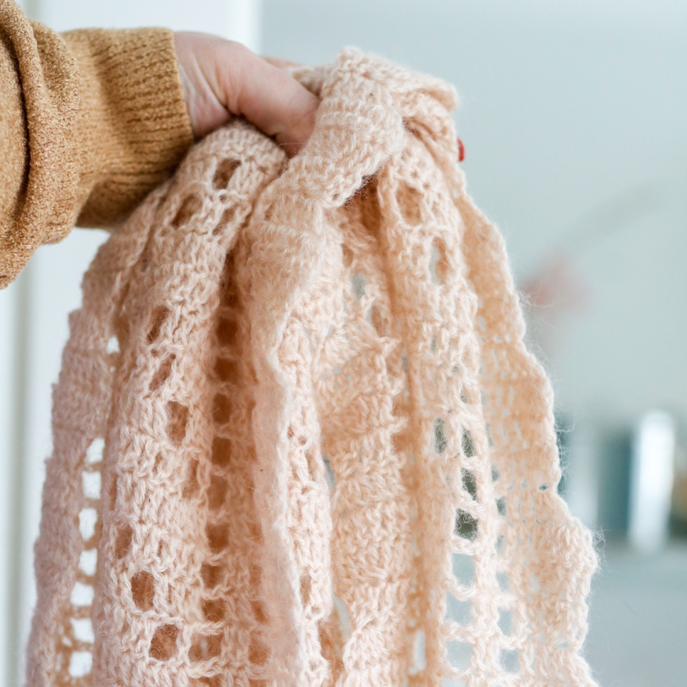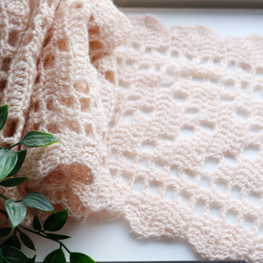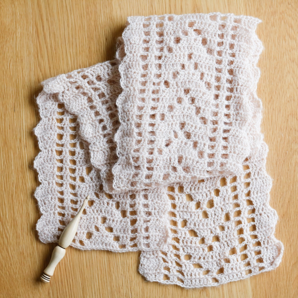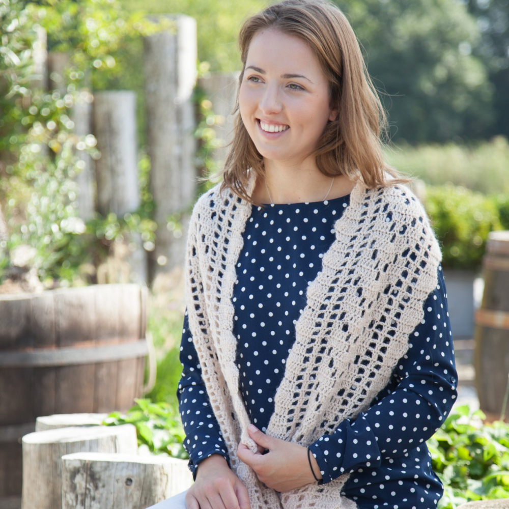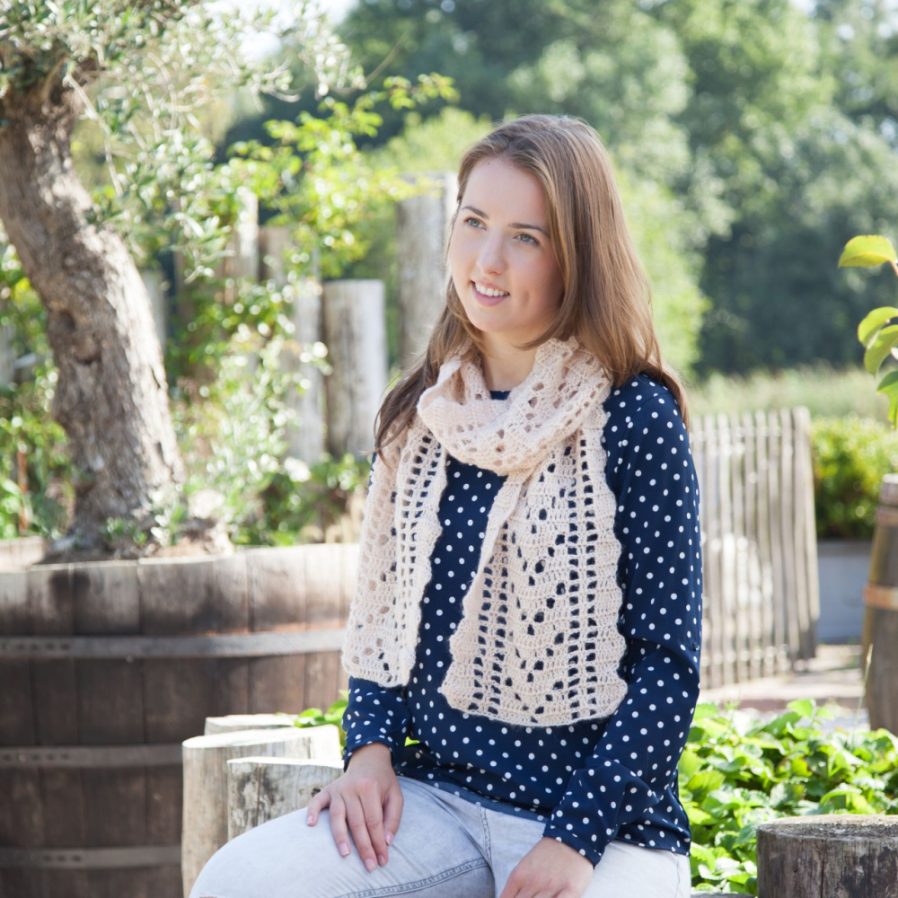 Het Bourgondische sjaaltje is een rechte sjaal met een leuk speels kantmotief. De rand haak je direct mee.