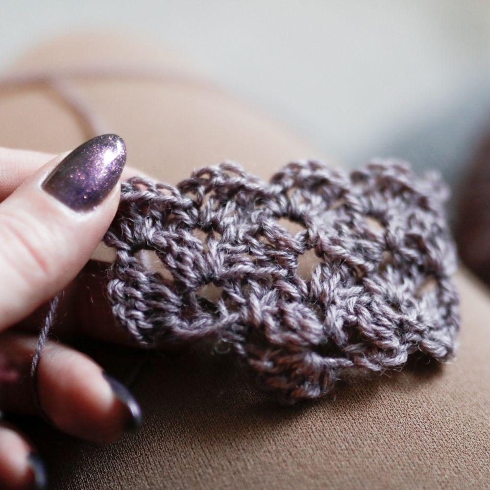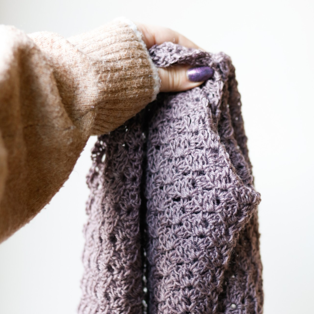 Deze kanten omslagdoek is zo gemakkelijk om te maken. De driehoekige sjaal heeft een mooie opengewerkte structuur die is opgebouwd uit één enkele herhalingstoer.