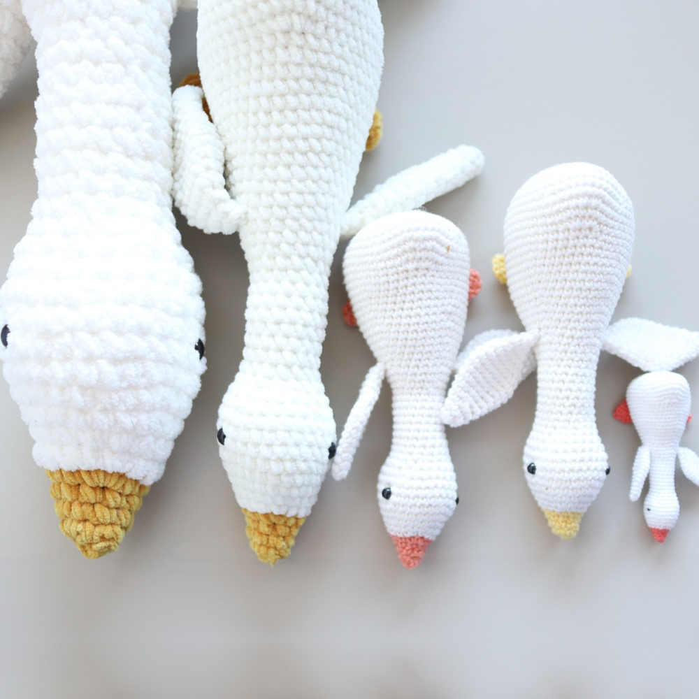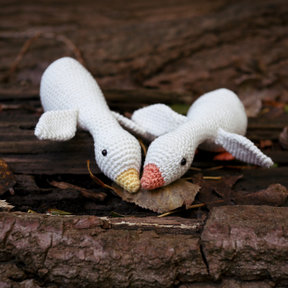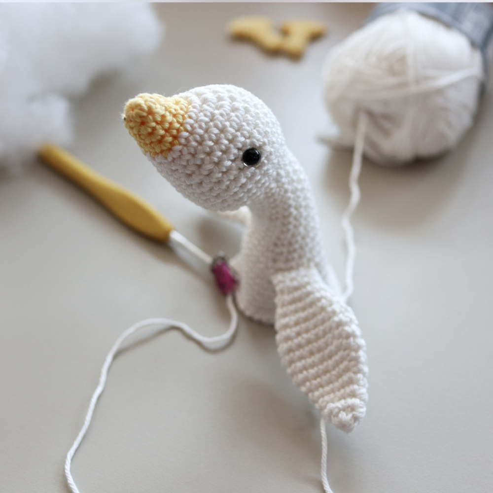 - Voor de standaard gans (±16 cm): Garen voor nld 2,5-3,5mm. Ik gebruikte Durable Coral (1 bol van 125m/50g is genoeg) in wit #326 Ivory en geel #309 Light Yellow of oranje: #2195 Apricot.