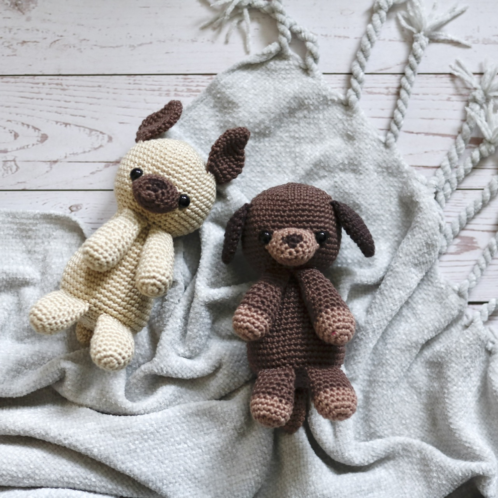 - Voor een hondje van ±13cm: Garen voor nld 2,5-3,5mm. Ik gebruikte Durable Coral (1 bol van 125m/50g is genoeg voor elke kleur)