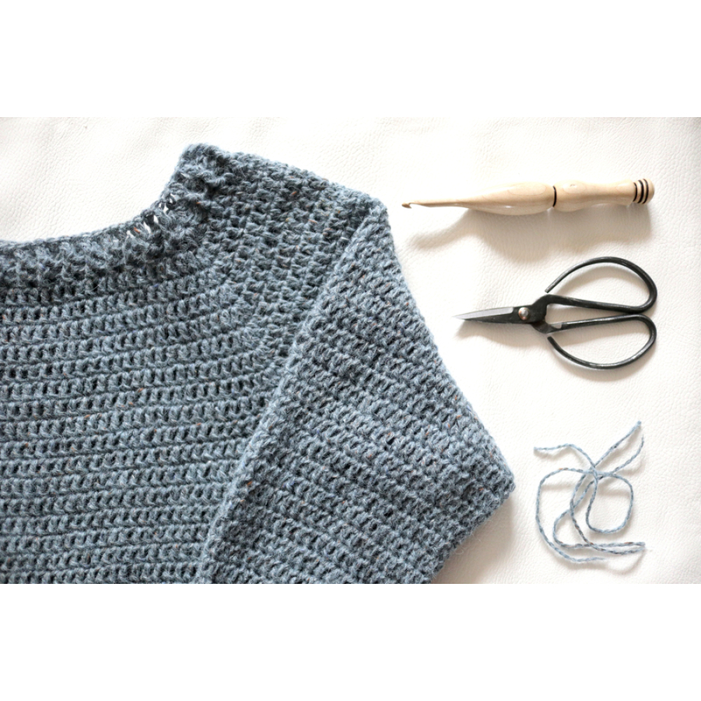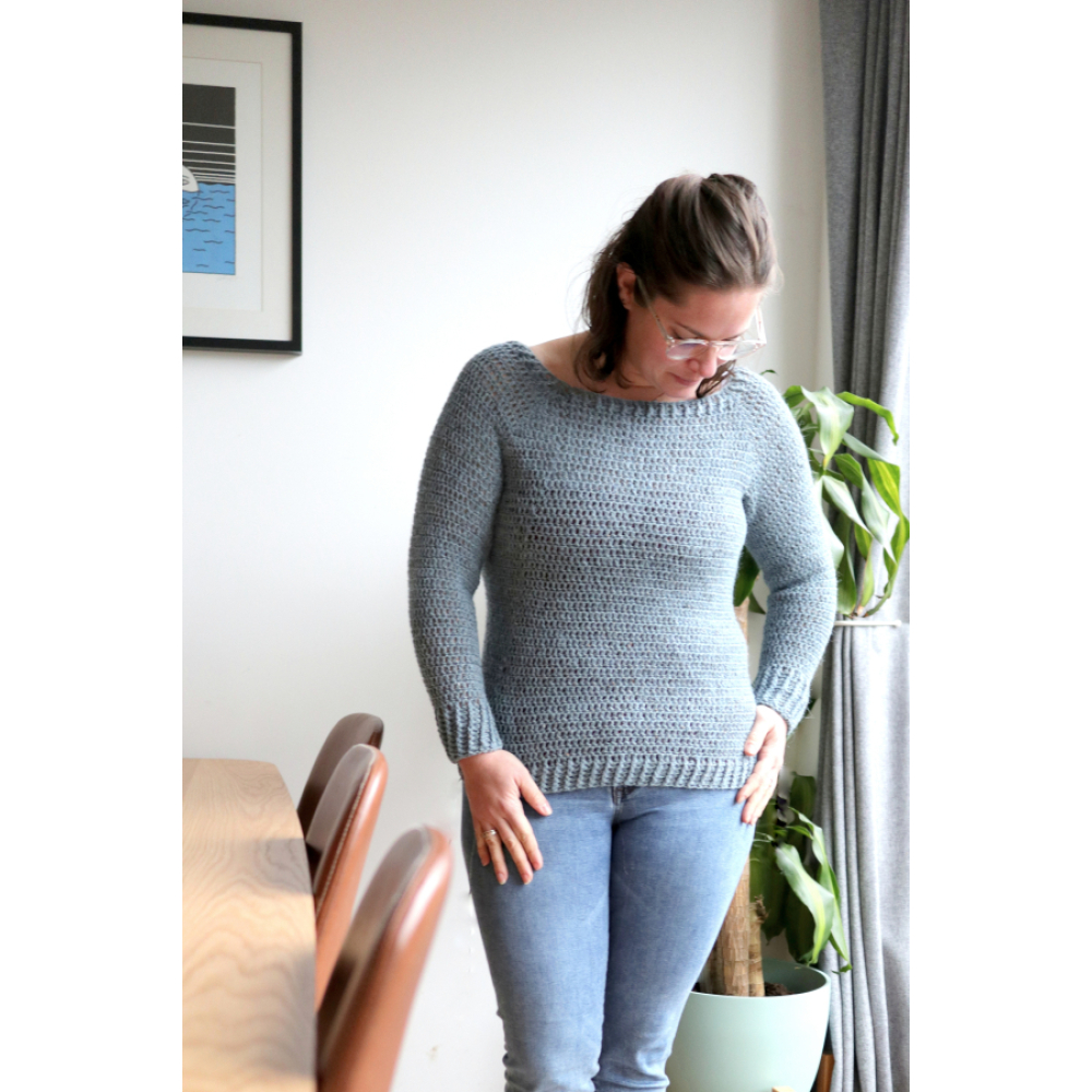 De ijsvogel trui is een heerlijke basic trui, die je gemakkelijk aan je wensen kunt aanpassen. Je haakt de trui aan één stuk in het rond, en hoeft achteraf niets in elkaar te zetten. De pasvorm is erg flatterend doordat de trui net niet aanlsuitend is. De lengte van de trui en de mouwen zijn naar wens aan te passen.