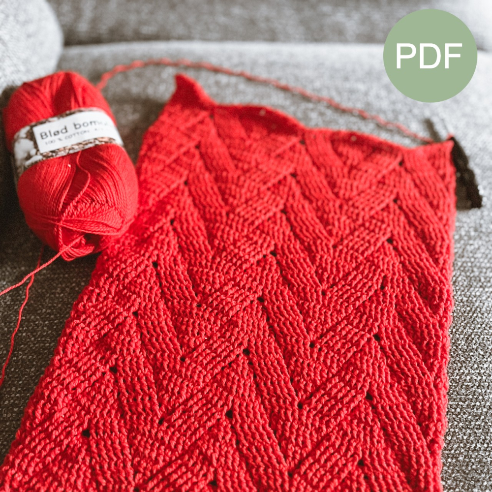 - Garen voor nld 2,5 - 3,5 mm, ik gebruikte 3 bollen Hjertegarn Blod Bomuld (340 m/ 100 g), kleur: #041.