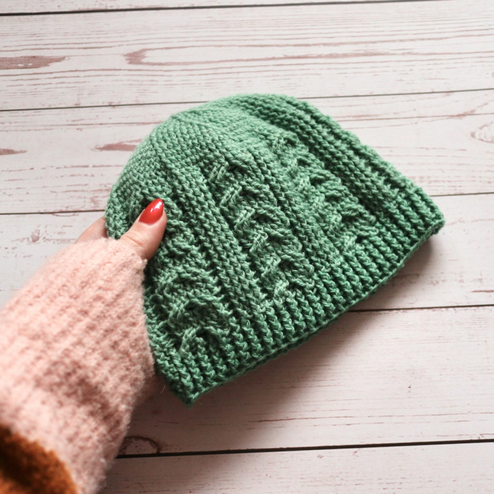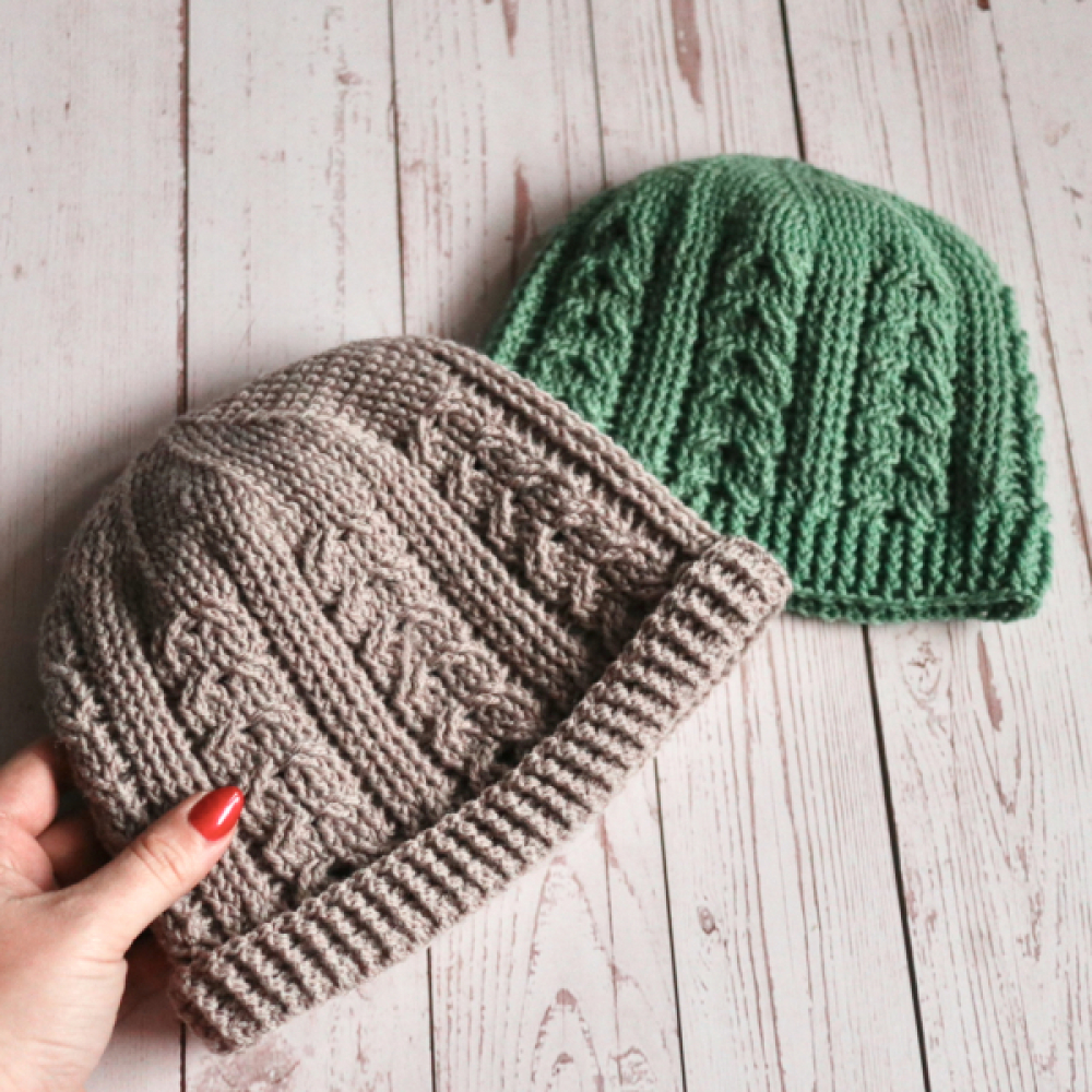 Deze muts heeft een prachtig kabel motief, gehaakt met reliefstokjes.