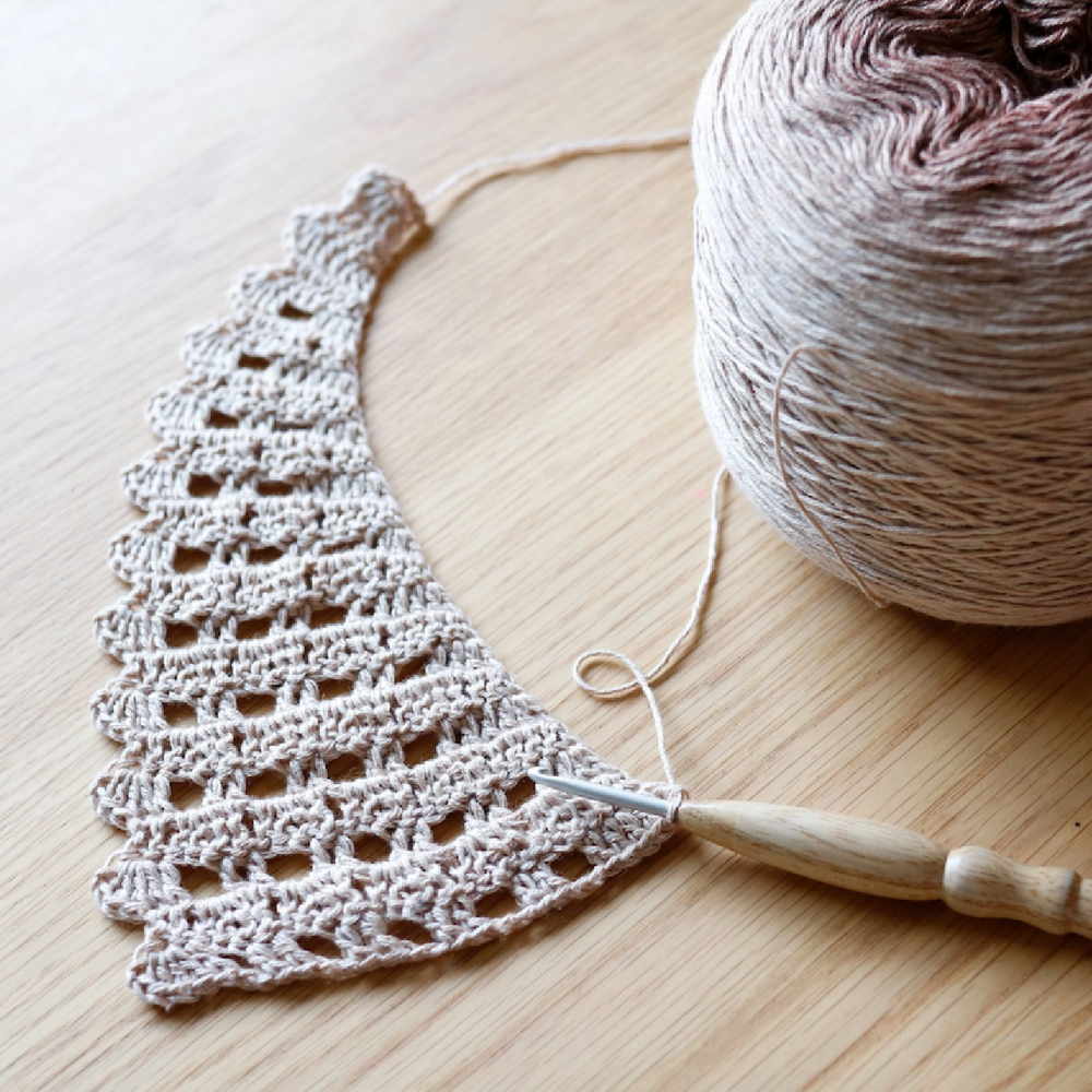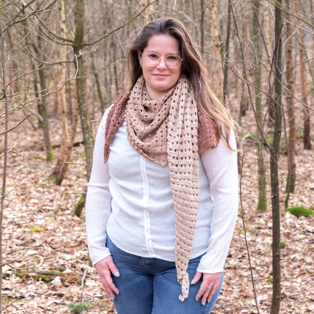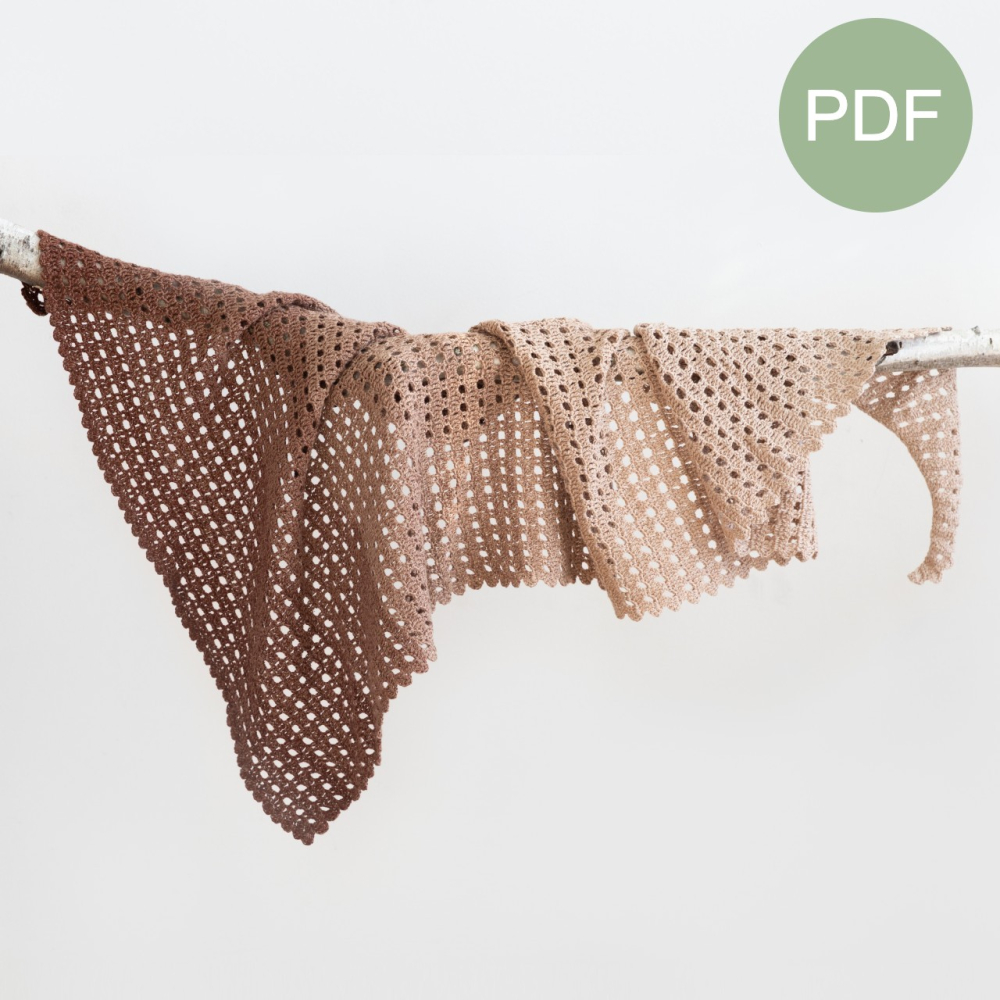 De Kiezel sjaal wordt zijwaarts gehaakt en heeft een driehoekige vorm. Het patroon blijft zich herhalen en je haakt de rand direct mee. Je kunt daardoor op elk gewenst moment stoppen en de sjaal precies zo groot maken als je zelf wilt.