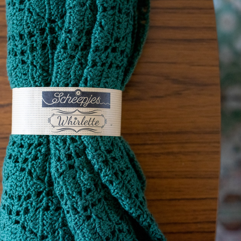 -Garen voor nld 2,5 - 3,5 mm, ik gebruikte 2 bollen Scheepjes Whirle>e (454 m/ 100 g), kleur: #861 Avocado