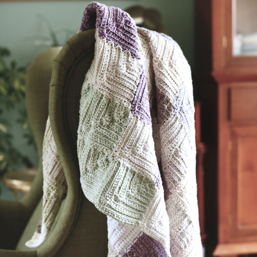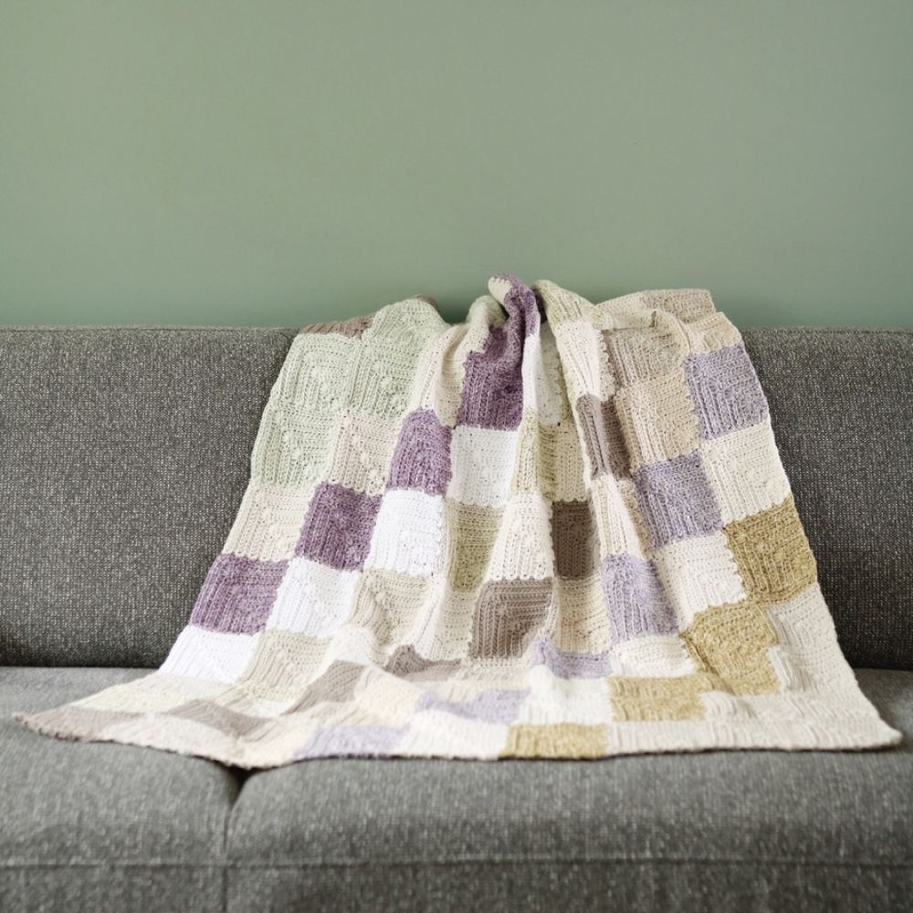 -Afmeting: De afmeting van de bank-deken is 110x100cm. Het patroon is gemakkelijk aan te passen naar andere maten.