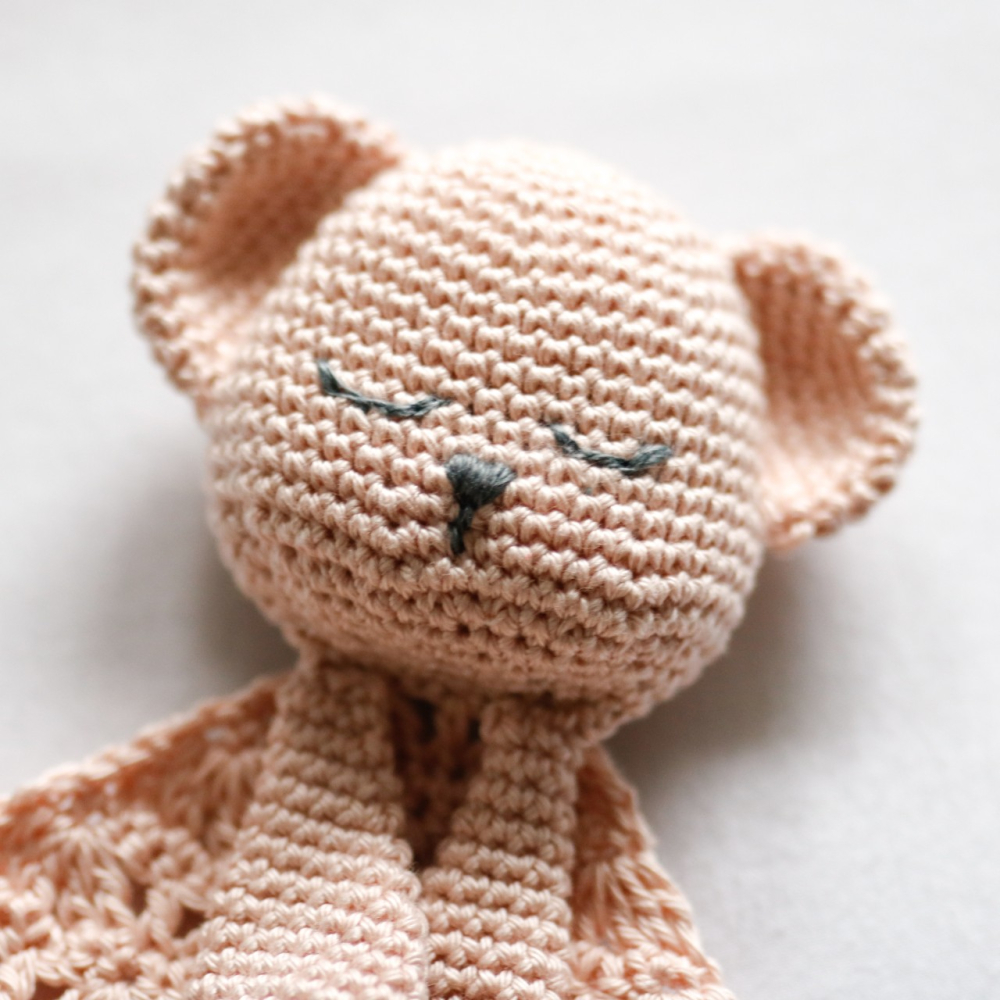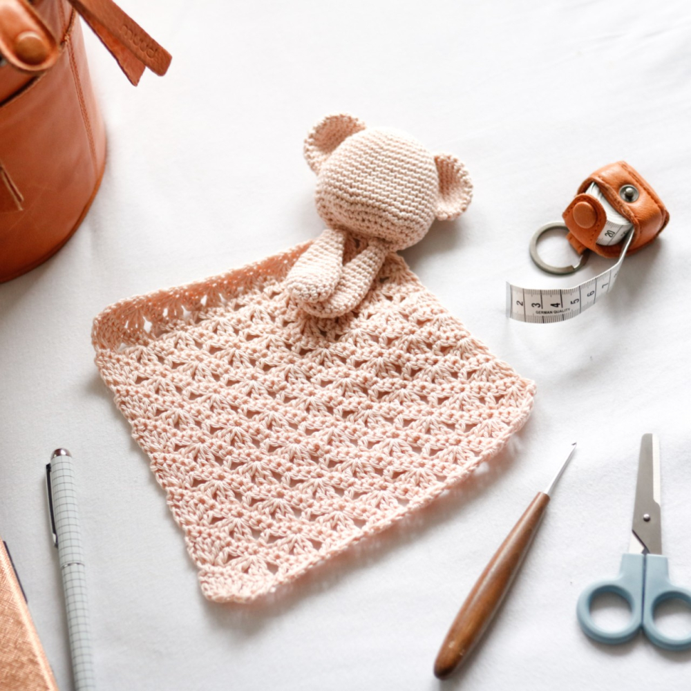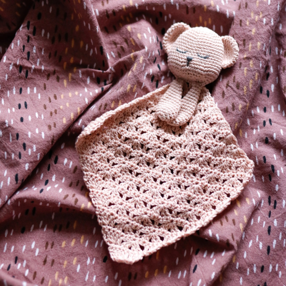 Dit lieve knuffeldoekje heeft een mooi kanten lijfje. De verschillende onderdelen en texturen zijn heerlijk om te ontdekken voor kleine baby-handjes. Gebruik verschillende of zelfs meerdere kleuren om het knuffellapje helemaal naar wens te maken.