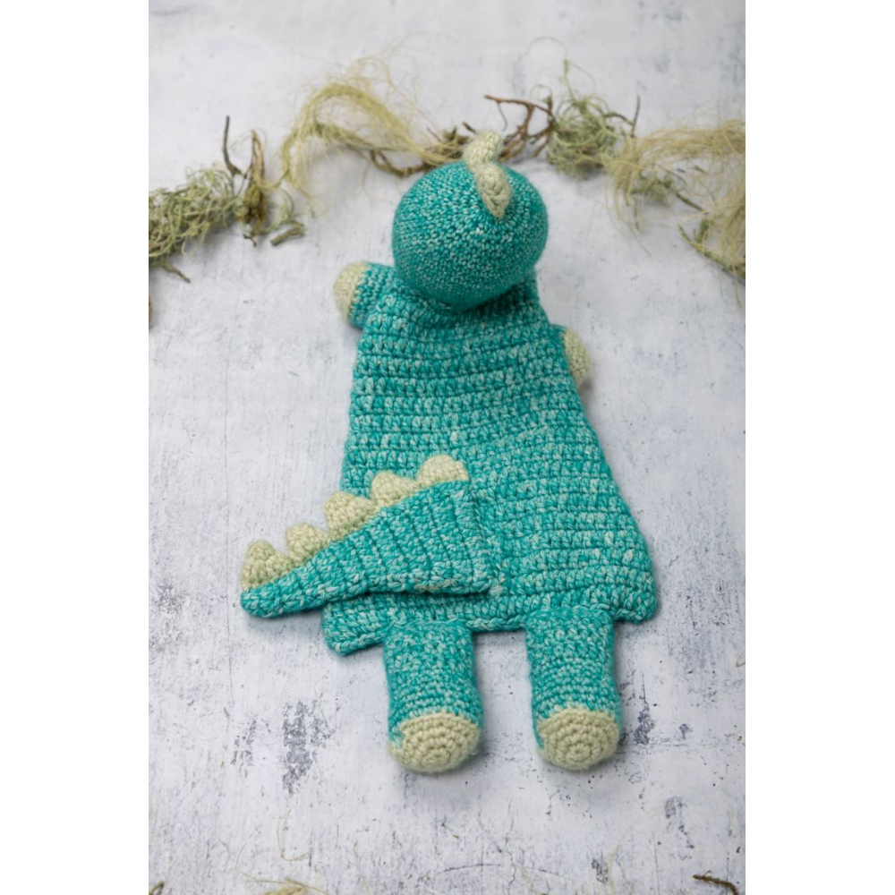 -Garen: Voor de dino lappenpop: Garen voor nld 3-4mm, ik gebruikte Scheepjes Stone Washed, in blauw (Turquoise 824: 150m) en groen (New Jade 819: 90m). Goud met zwarte veiligheidsoogjes 15mm