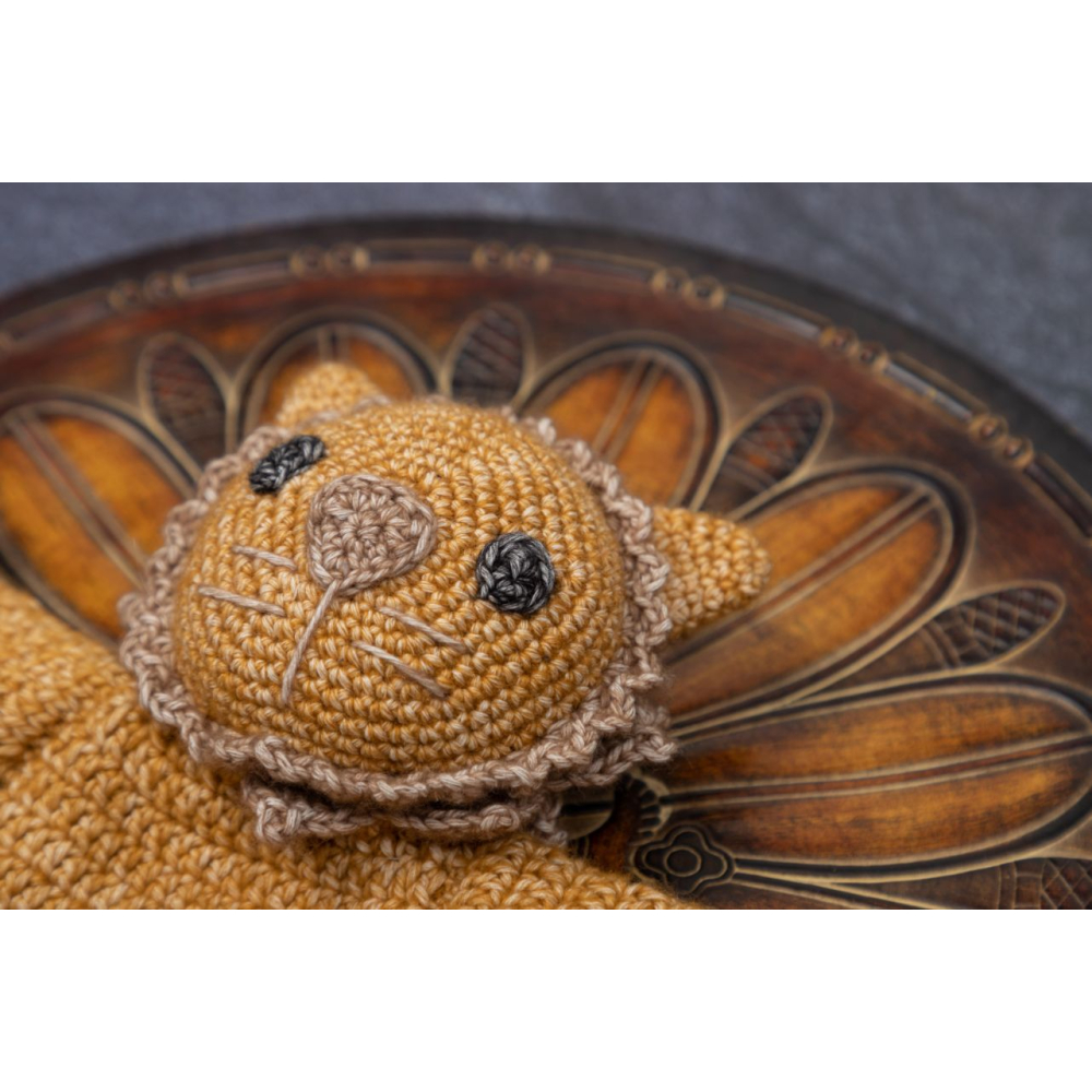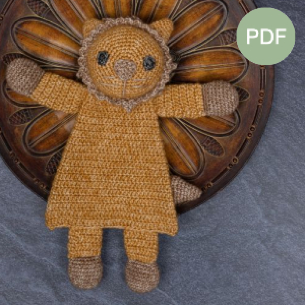 Deze leeuw is 29cm hoog, wil je liever een kleinere variant maken of juist een leuke set van grote en kleine lappenpop, bekijk dan hier het patroon van de mini leeuw, of hier de aanbieding met beide patronen in een duo deal.