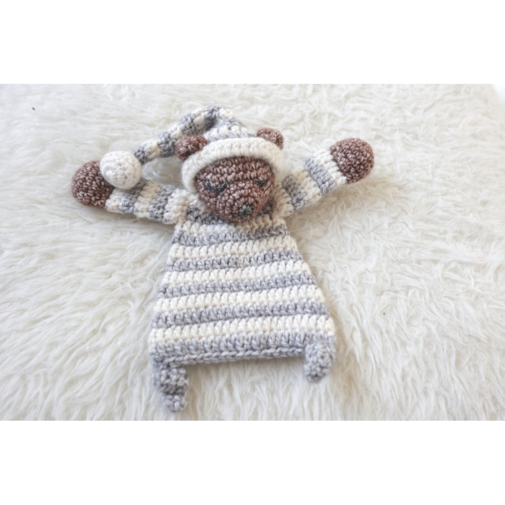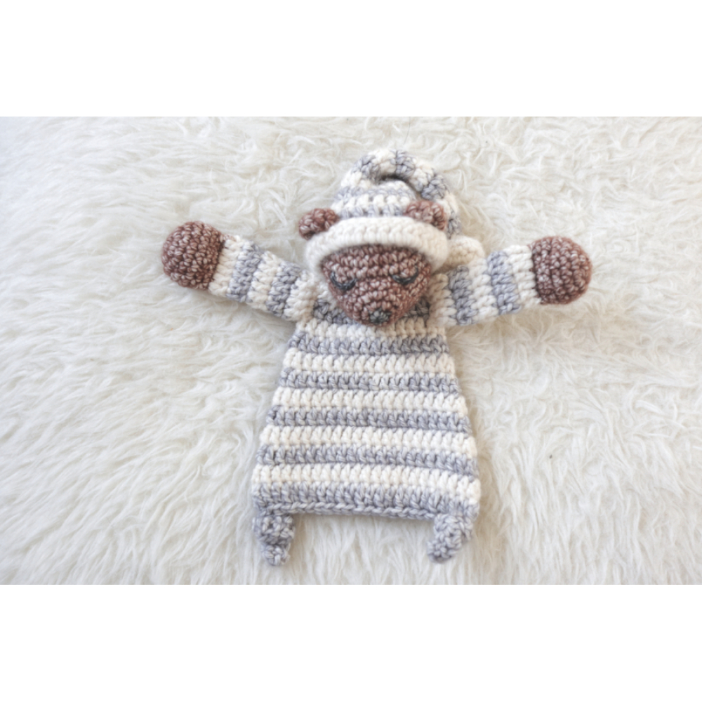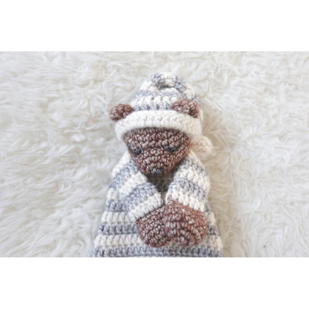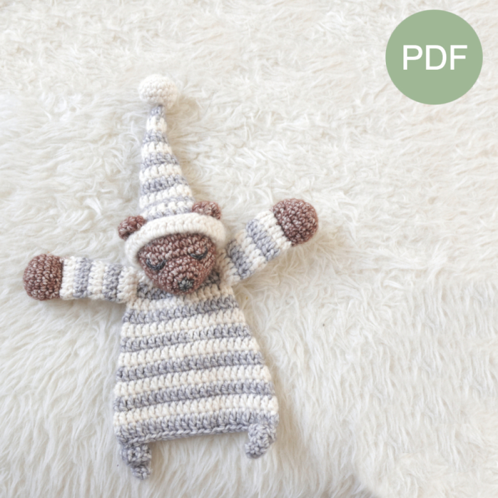 Deze mini slaapbeer is 15cm hoog (zonder muts), wil je liever een grotere variant maken of juist een leuke set van grote en kleine lappenpop, bekijk dan hier ook het patroon van de slaapbeer, of hier de aanbieding met beide patronen in een duo deal.