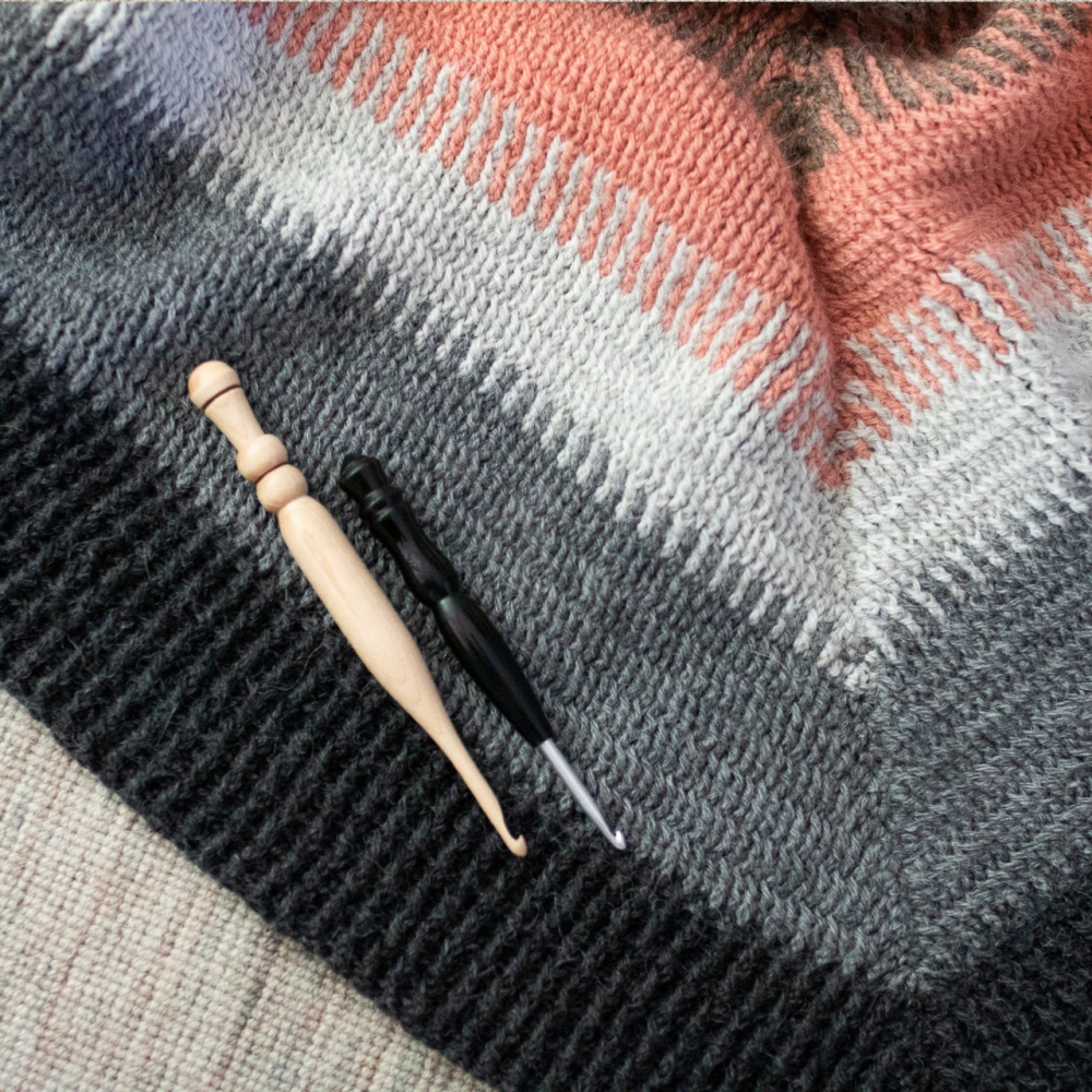 -Garen: Voor dit project gebruikte ik 7 bollen sokkenwol voor nld 2,5 - 3,5 mm (210 m/50 g), de eerste 3 kleuren allemaal 1 bol en de laatste 2 kleuren elk 2 bollen: