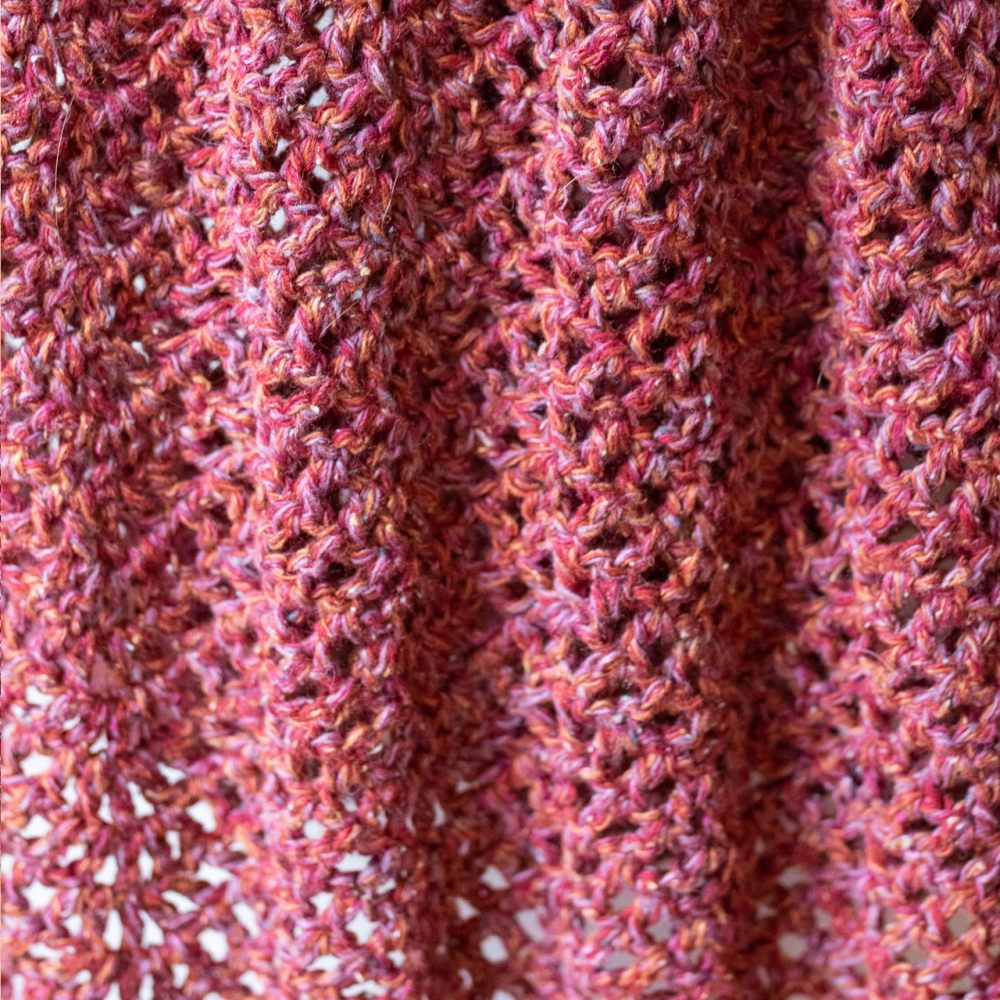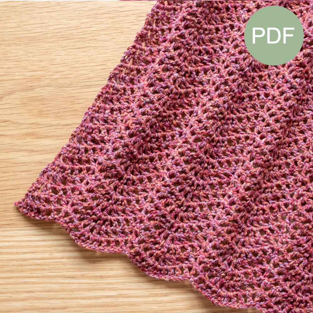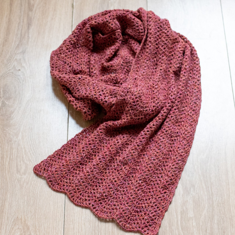 Deze sjaal kun je met allerlei garens en bijpassende haaknaald haken.