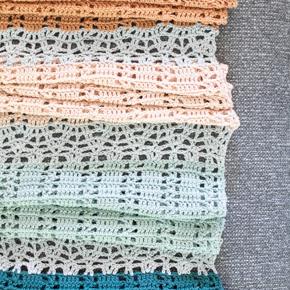 Het patroon gebruikt alleen eenvoudige steken en is daardoor niet moeilijk om te haken. De rechte delen zijn heerlijk gedachteloos door te haken, een perfect patroon voor bij de tv op of vakantie!