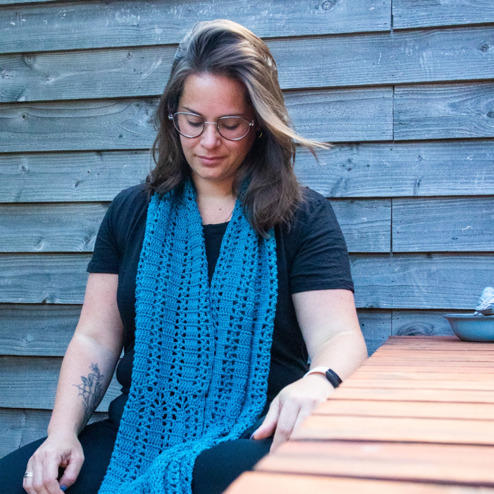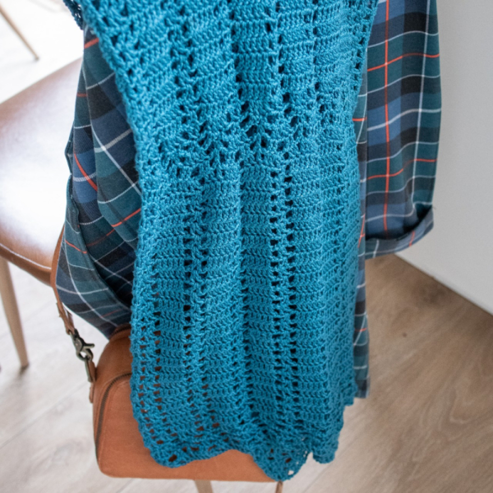 Als je goed naar de sjaal kijkt, zul je vast snel zien waar de naam vandaan komt. De mooie kanten stroken worden gescheiden door statige gehaakte pilaren. De recht sjaal valt heerlijk soepel en is een genot om te dragen, het hele jaar door.
