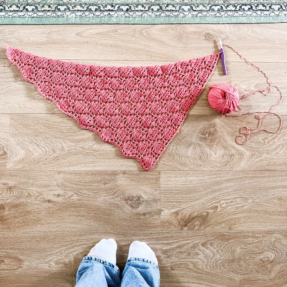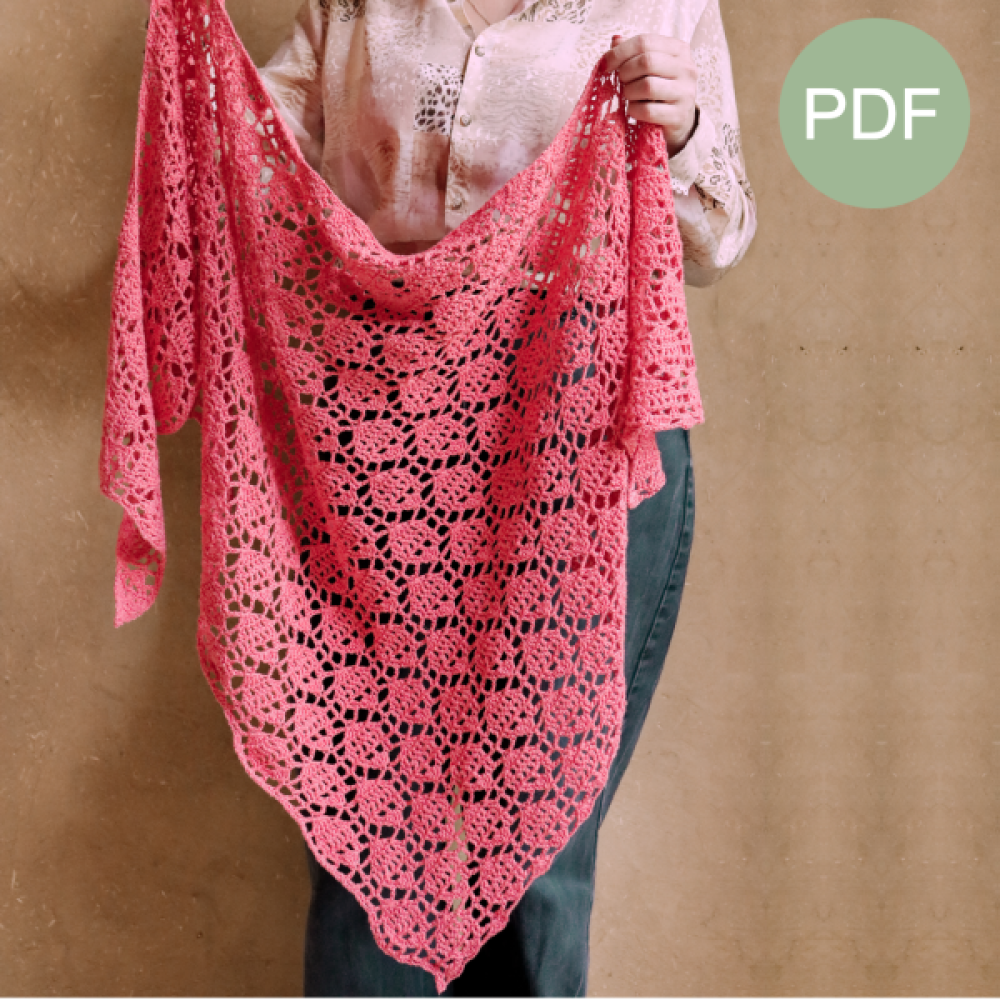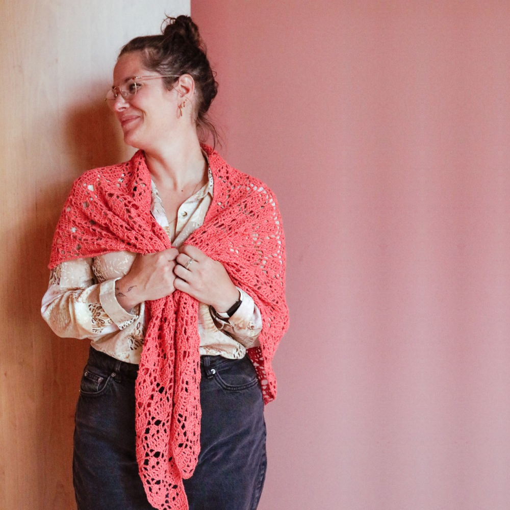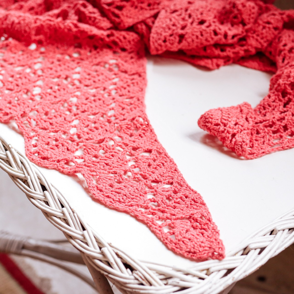 De Pioenroos Sjaal is een prachtige asymmetrische driehoeksjaal, met een bijzonder kant-motief. Het patroon is gemakkelijk te onthouden waardoor het heerlijk ontspannen haakt. Je maakt deze sjaal zijwaarts waarbij je onderweg ook direct de rand haakt.