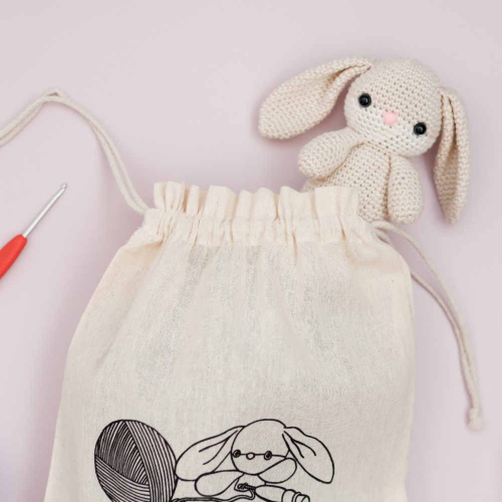 In deze handige projecttas kun je gemakkelijk alle spulletjes opbergen die je nodig hebt voor jouw haakproject.