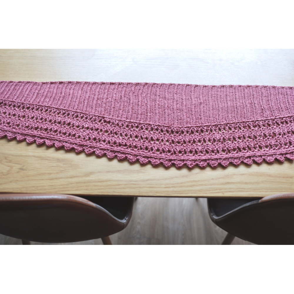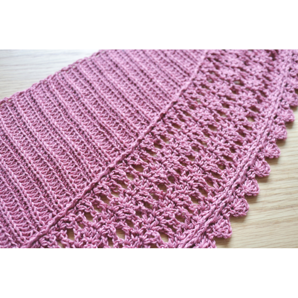 De Romantische sjaal heeft meerdere segmenten, die allemaal tegelijk zijwaarts worden gehaakt.