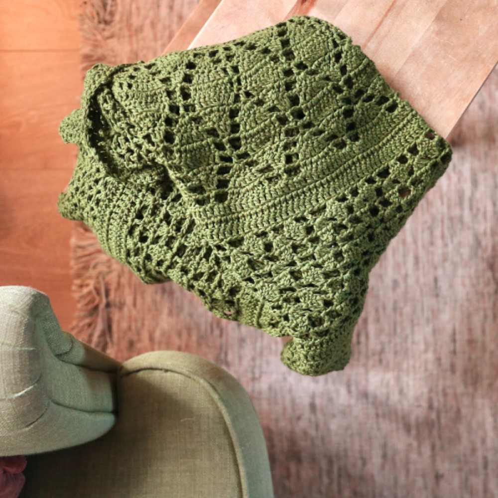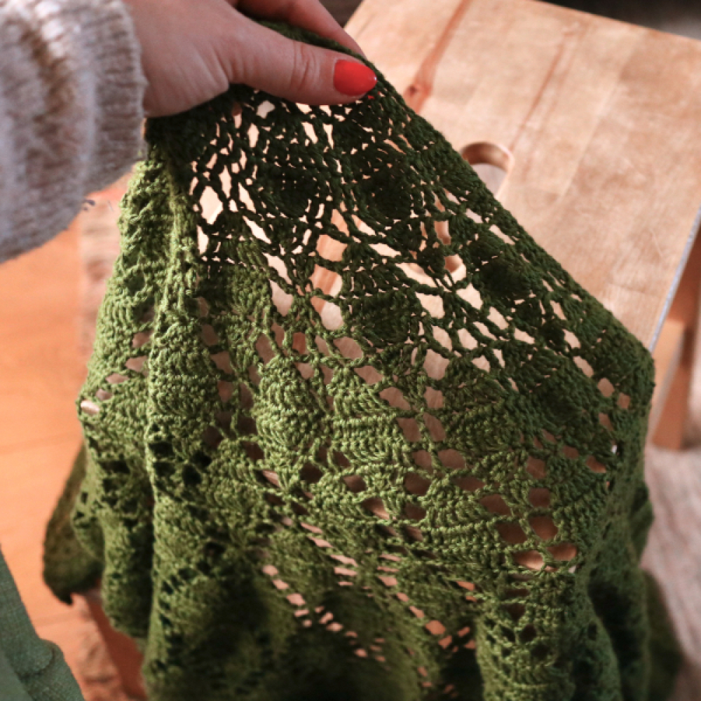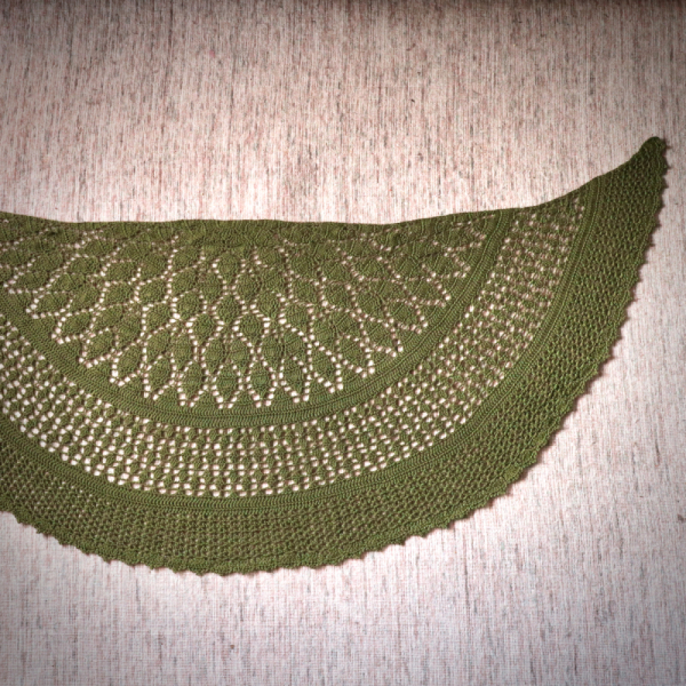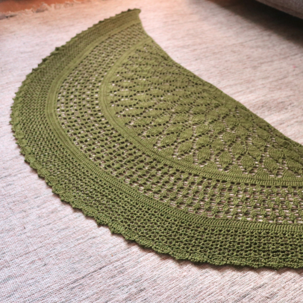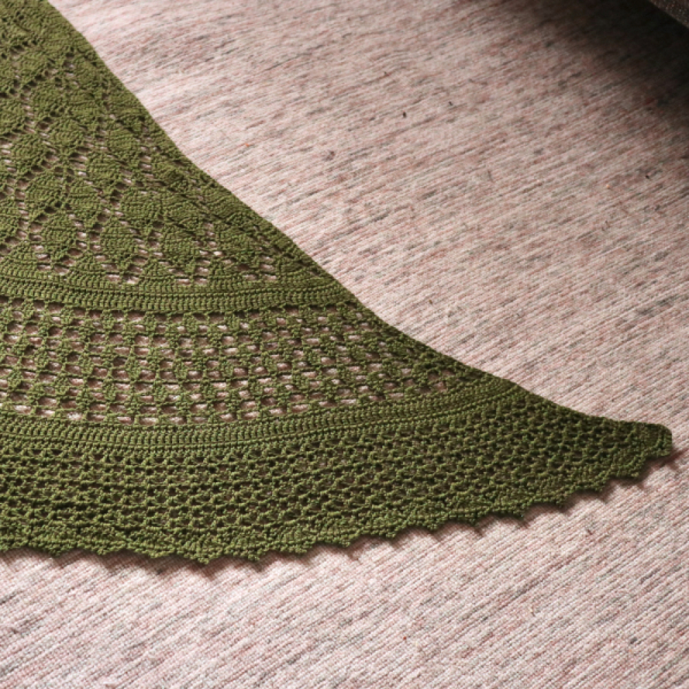 De Botanische Sjaal is een bijzondere omslagdoek met meerdere verschillende stekenpatronen. De haaksteken zijn geinspireerd door de natuur, zoals ook zichtbaar in het mooie bladermotief. De vorm van de sjaal is halfrond met iets uitlopende punten, waardoor deze ook erg mooi en sierlijk is om te dragen.