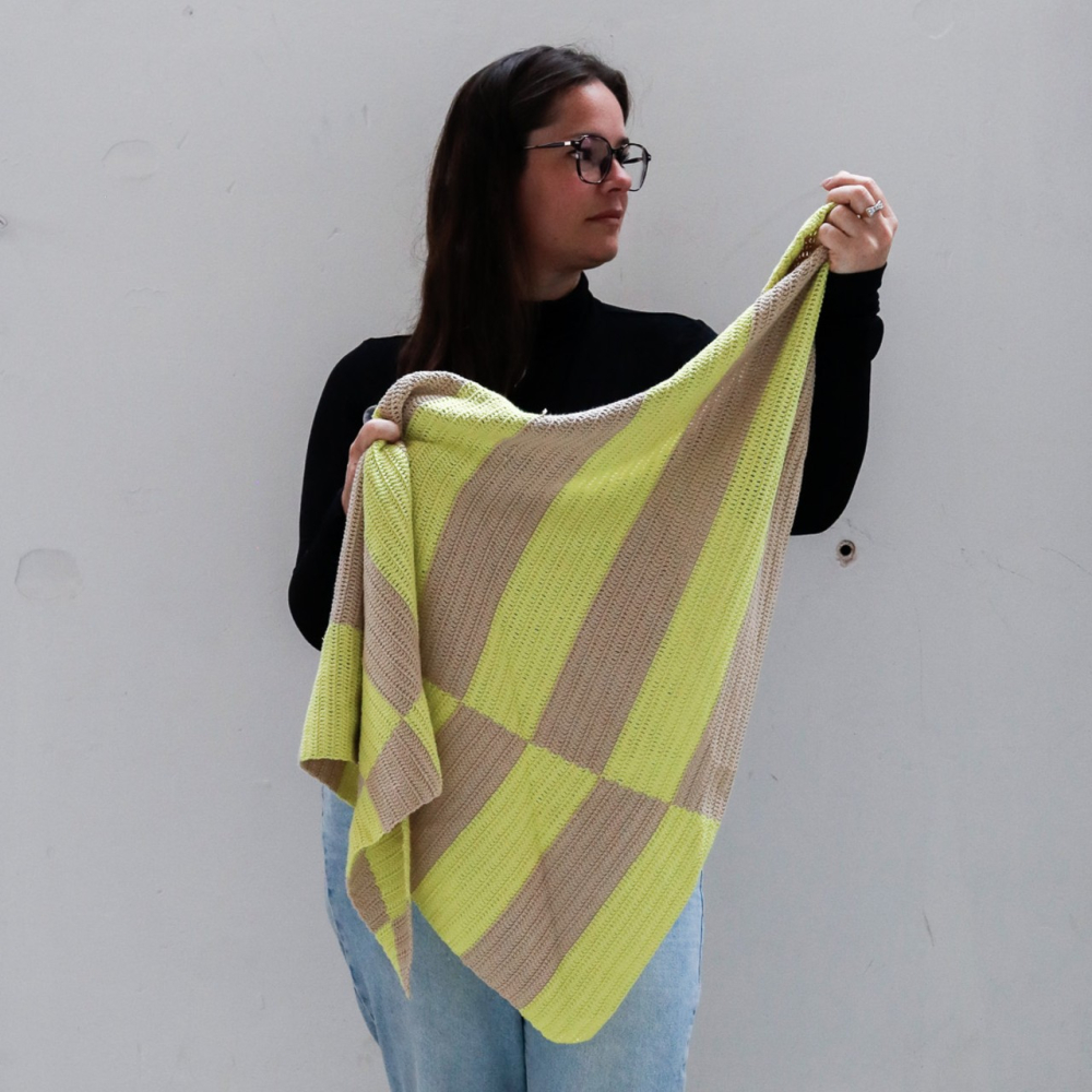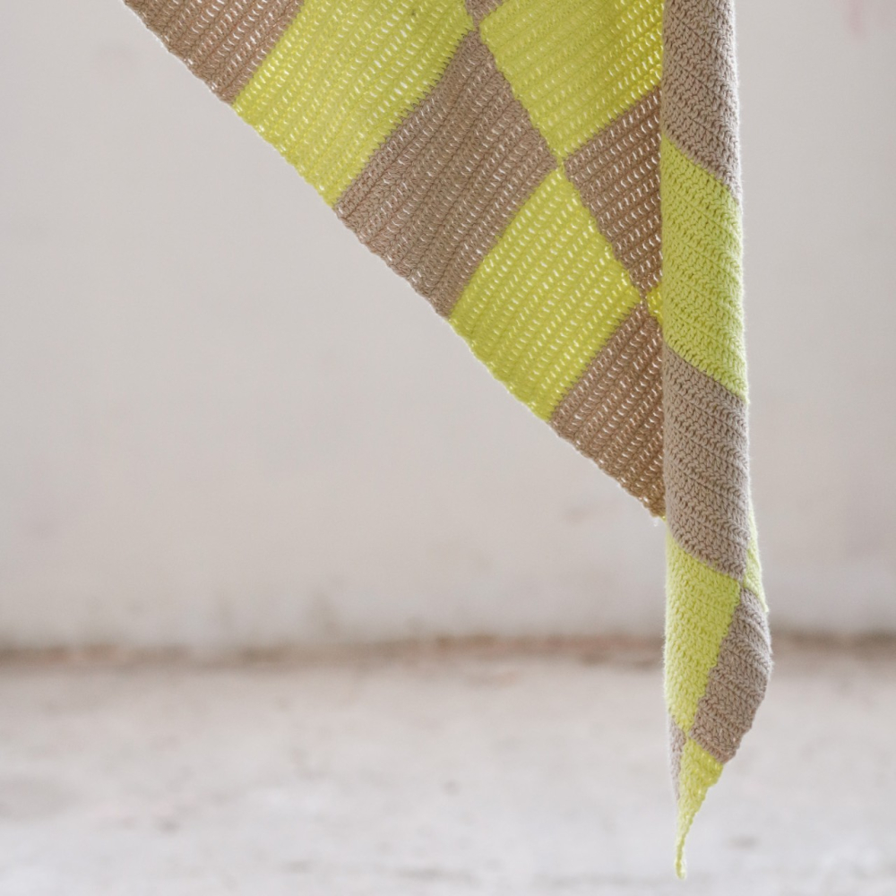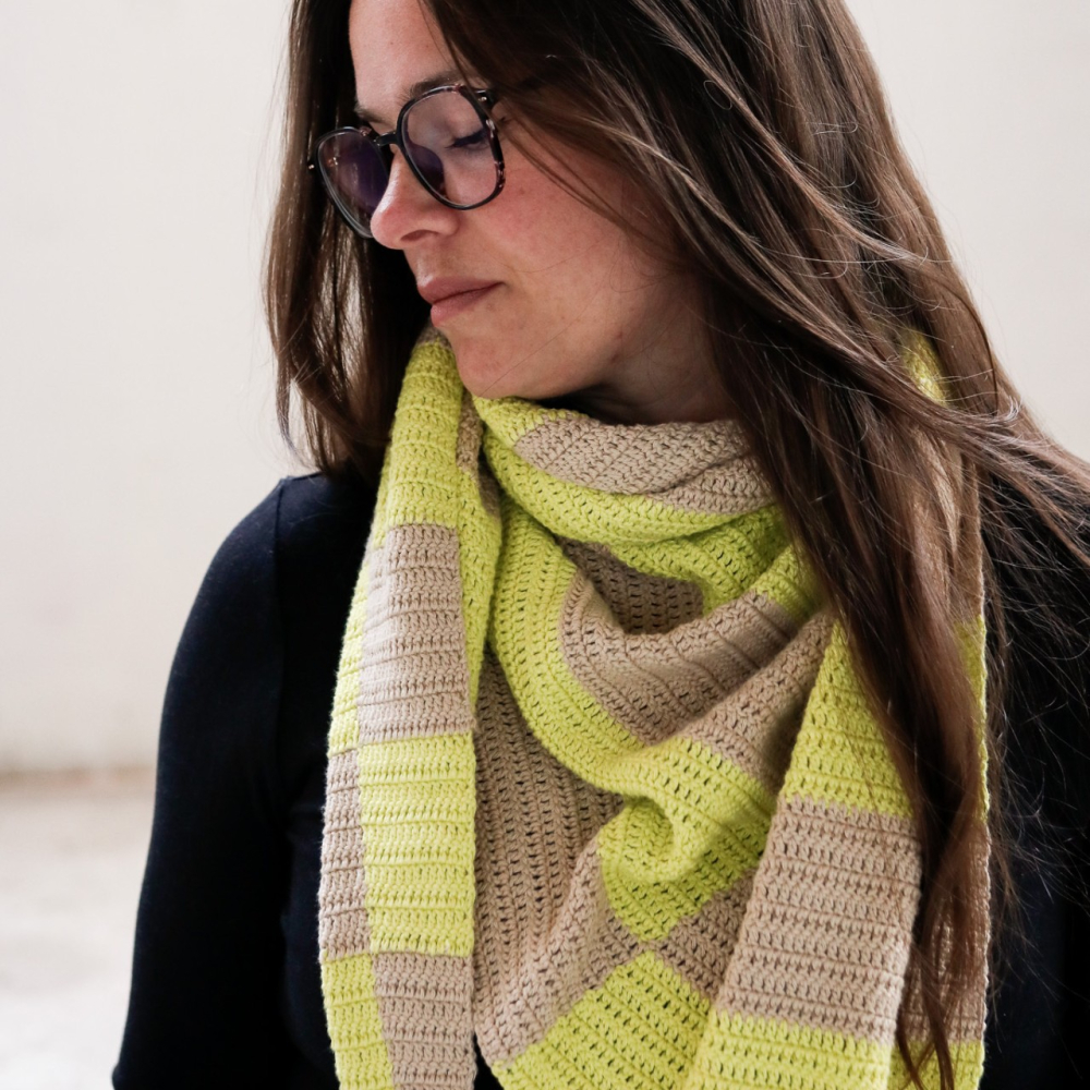 De Vlaggenschip Sjaal is een leuk en relatief simpel haakpatroon, voor een sjaal met een verrassend speels resultaat. In dit patroon maak je gebruik van een paar handige trucjes om verschillende kleurvlakken strak en netjes naast elkaar te haken.