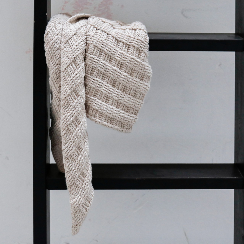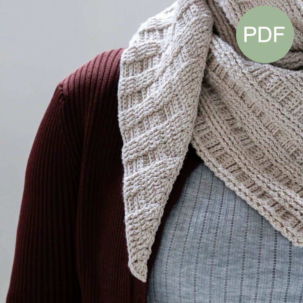 De Vlechtwerk sjaal is een driehoekige gehaakte sjaal, met een gevlochten textuur, die meteen in het oog springt. Het slimme maar eenvoudige gebruik van reliëfsteken zorgt voor een wafel patroon dat warm, comfortabel en prachtig is.