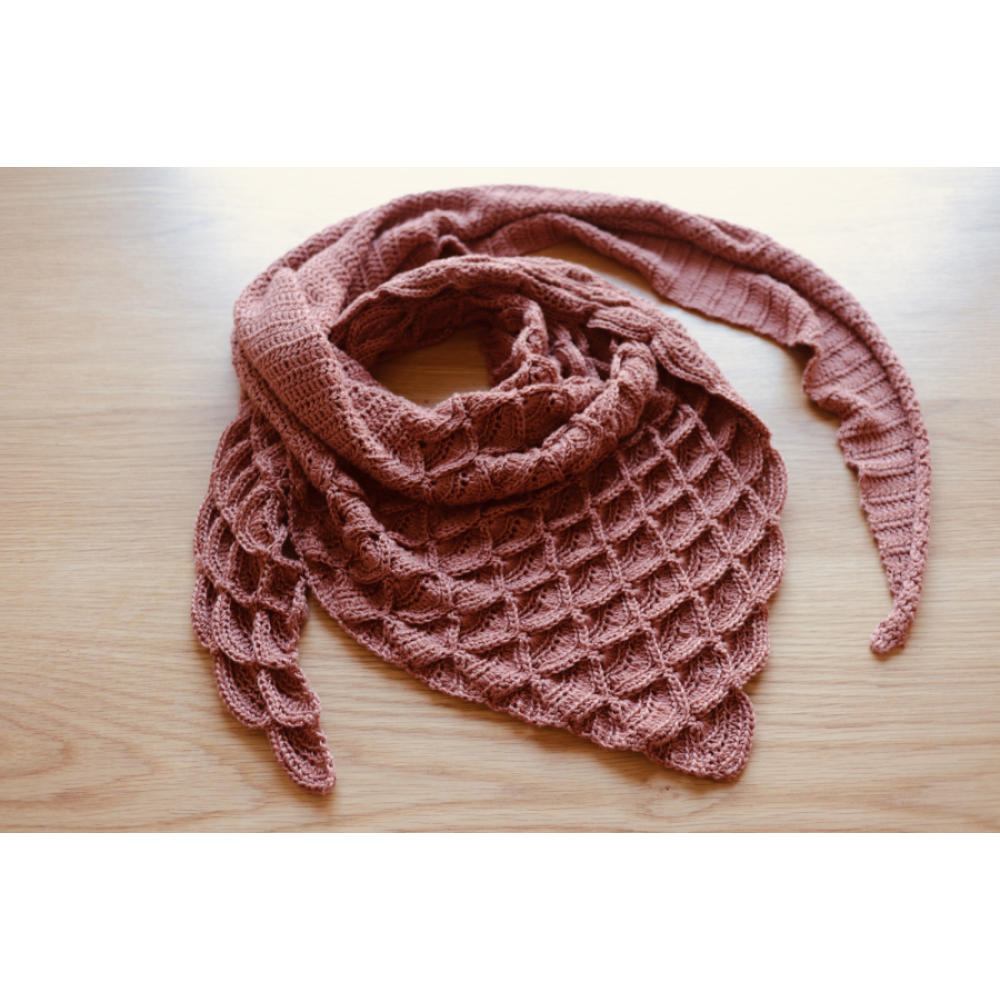De Woestijnbloem sjaal is een uniek haakpatroon dat goed werkt met vele verschillende type garens.